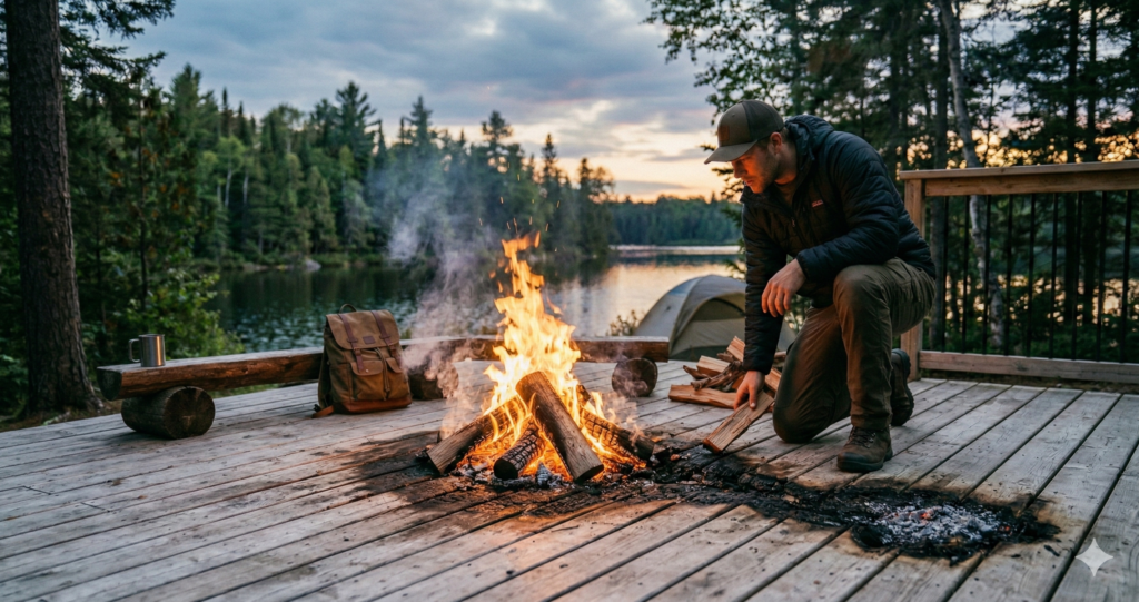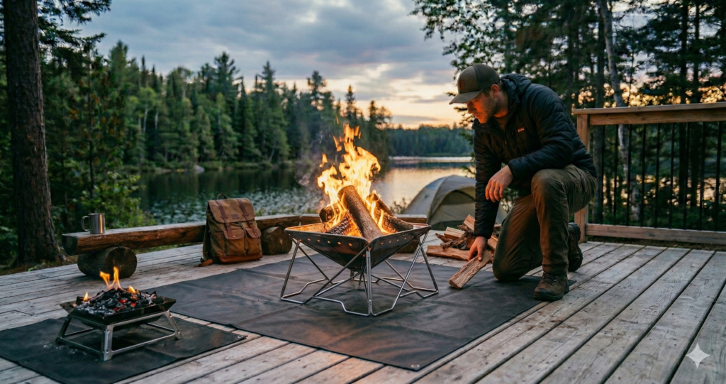 さて、ウッドデッキキャンプにおいて、絶対に避けて通れないのが「焚き火」の取り扱いです。デッキは木材ですから、当然燃えます。焦がしてしまったら原状回復は不可能で、高額な賠償請求に発展するケースも少なくありません。