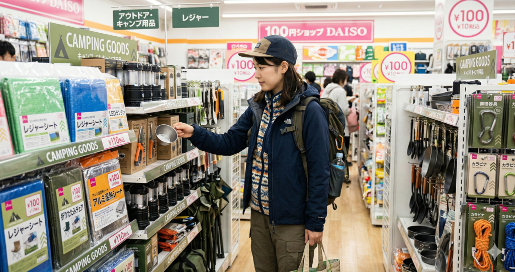 この「脚が隙間に沈み込む問題」、わざわざアウトドアブランドの高い専用オプションパーツ(ボールフィートなど)を買わなくても、100円ショップのアイテムで賢く対策できます!